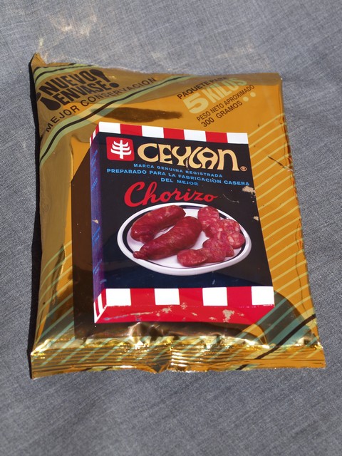 Mischung von Zusatzstoffen und Gewürzen des Herstellers Ceylan zur Chorizo-Herstellung. Man verwende ein Päckchen je 5 Kilo Fleischmasse.